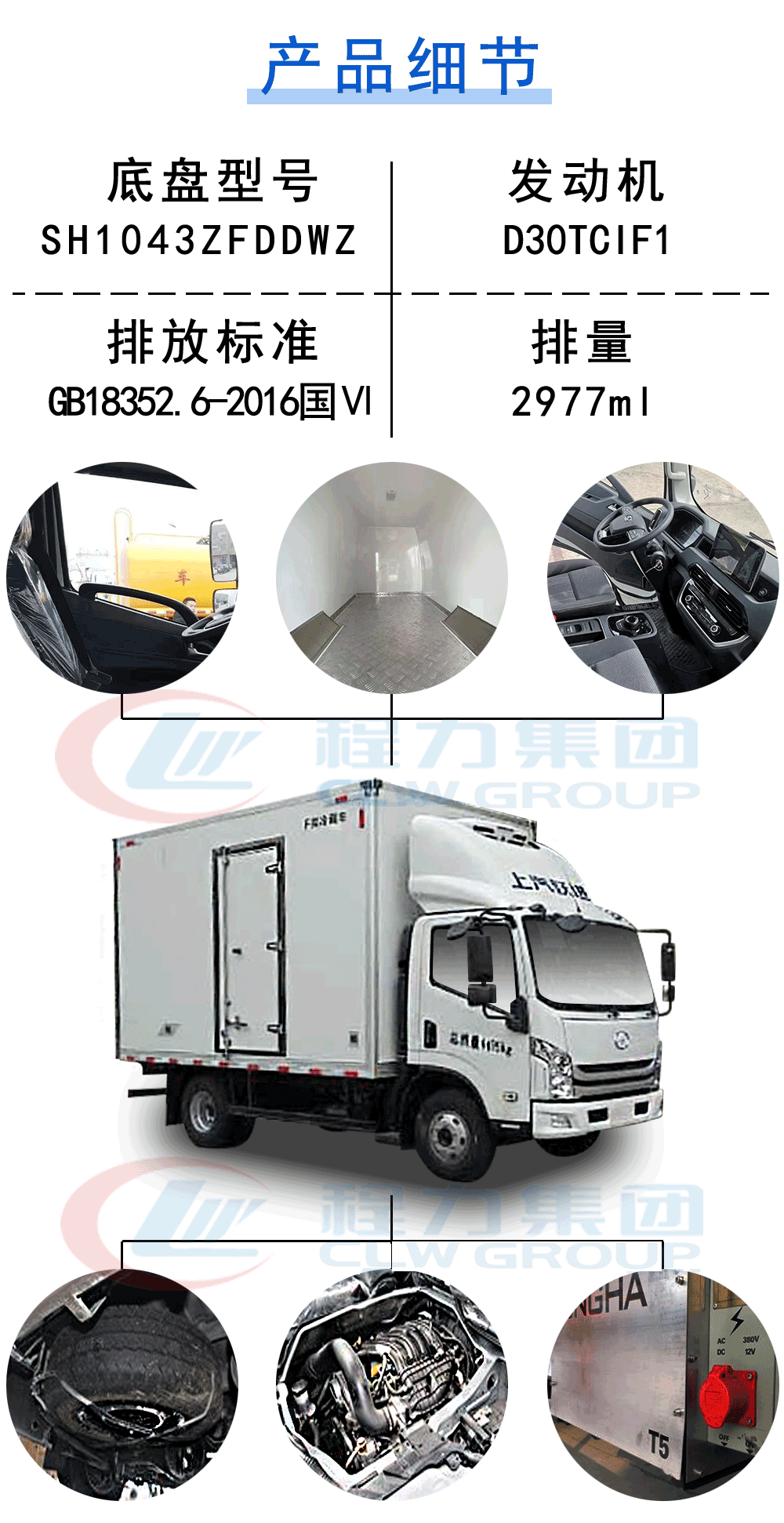 其它:2050寬體駕駛室,助力,動電??門窗,雙架支??冷藏專用底盤,室駛駕??空調,01??寸液晶屏+倒車影像,電子手剎,智能儀表,ABS,定速巡航,控遙??鑰匙。